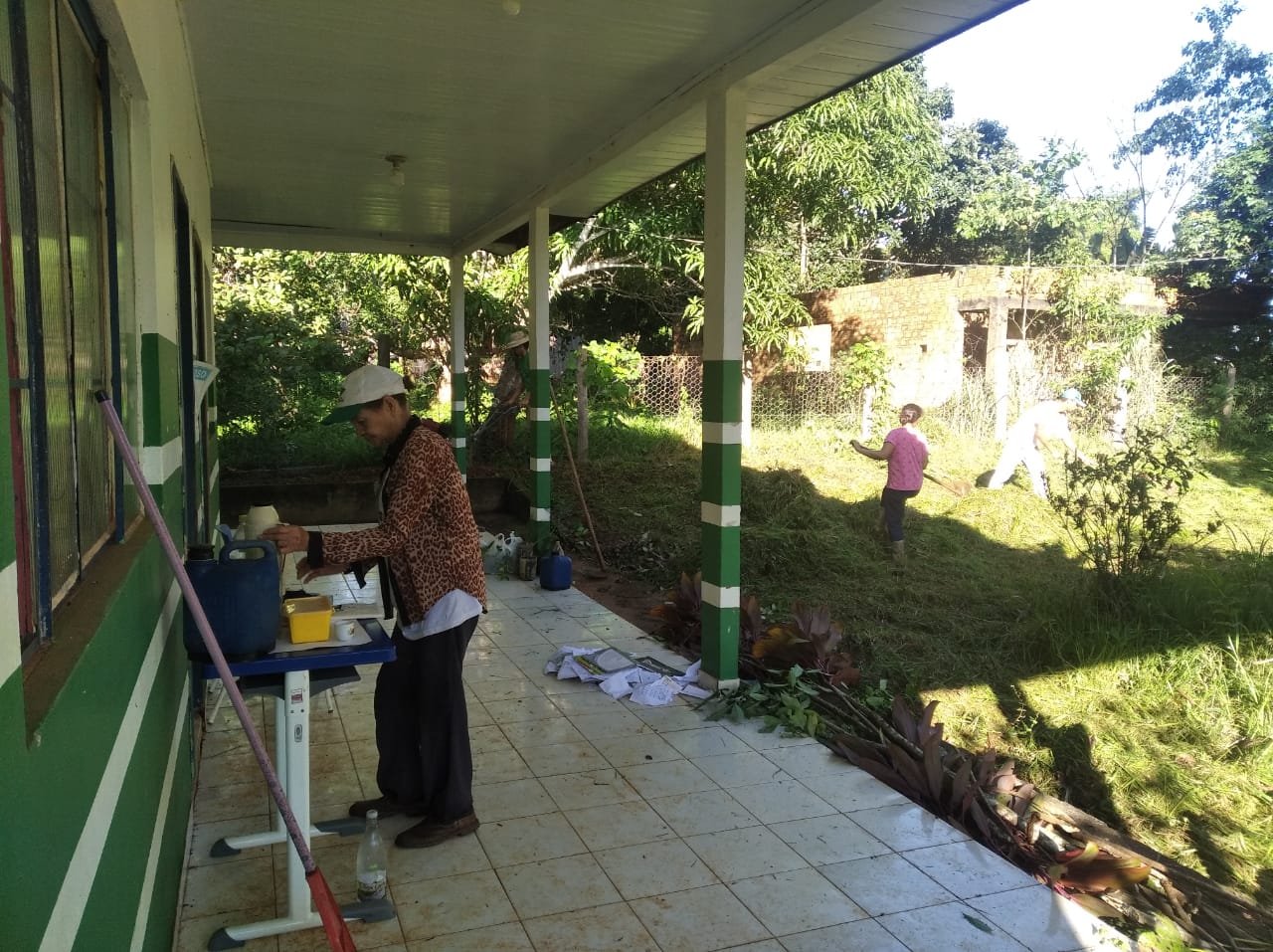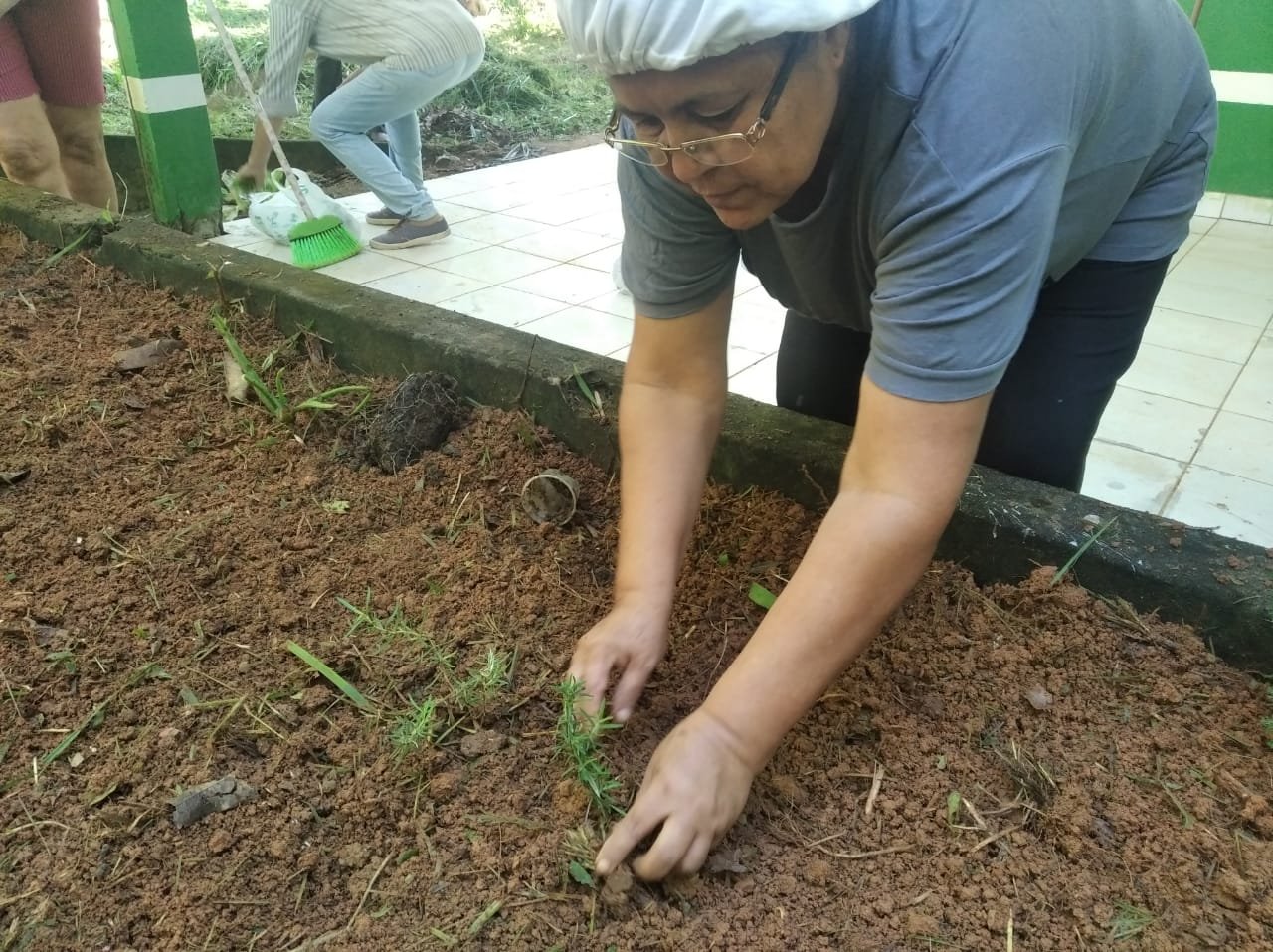 Com muita animação, as pessoas fizeram limpeza da área para construção da farmácia viva (horto medicinal), neste mesmo dia, o grupo conseguiu construir os canteiros e plantios de variedades de plantas medicinais, bem como, fizeram a limpeza da infraestrutura da central de atendimentos de pessoas.