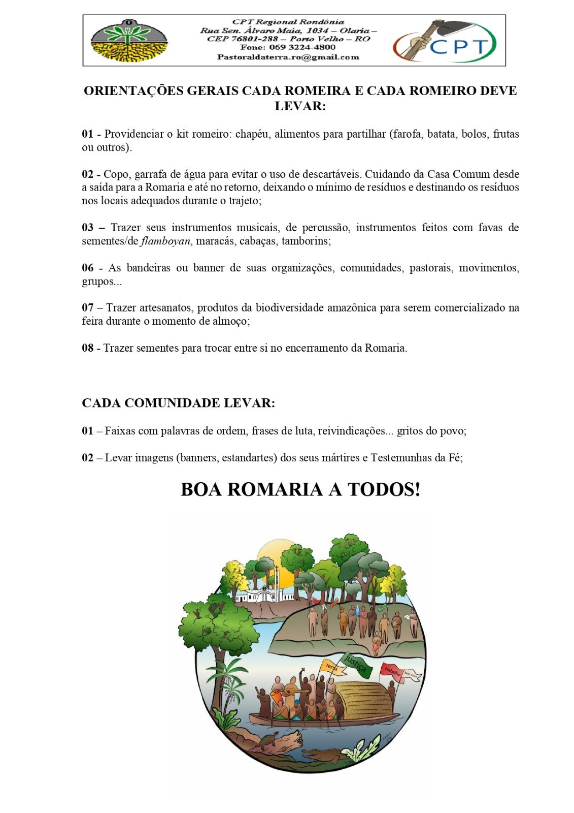 A 12ª Romaria da Terra, das Águas e Florestas está em sua fase final de preparação e promete reunir cerca de 2 mil pessoas de diversas regiões de Rondônia. Com o tema “Ouvir e comprometer-se com as dores e lutas dos povos e da mãe Natureza” e o lema “Deus viu a aflição, ouviu o clamor e desceu para libertar o povo de seus sofrimentos” (Cf. Ex. 3, 7 -8), o evento será um marco de espiritualidade e compromisso com as causas sociais e ambientais. A Romaria ocorrerá no dia 20 de outubro, na Diocese de Guajará-Mirim, com a comunidade local acolhendo os romeiros de braços abertos. Caravanas de várias regiões já estão sendo organizadas rumo ao município de Costa Marques, onde o evento será realizado.