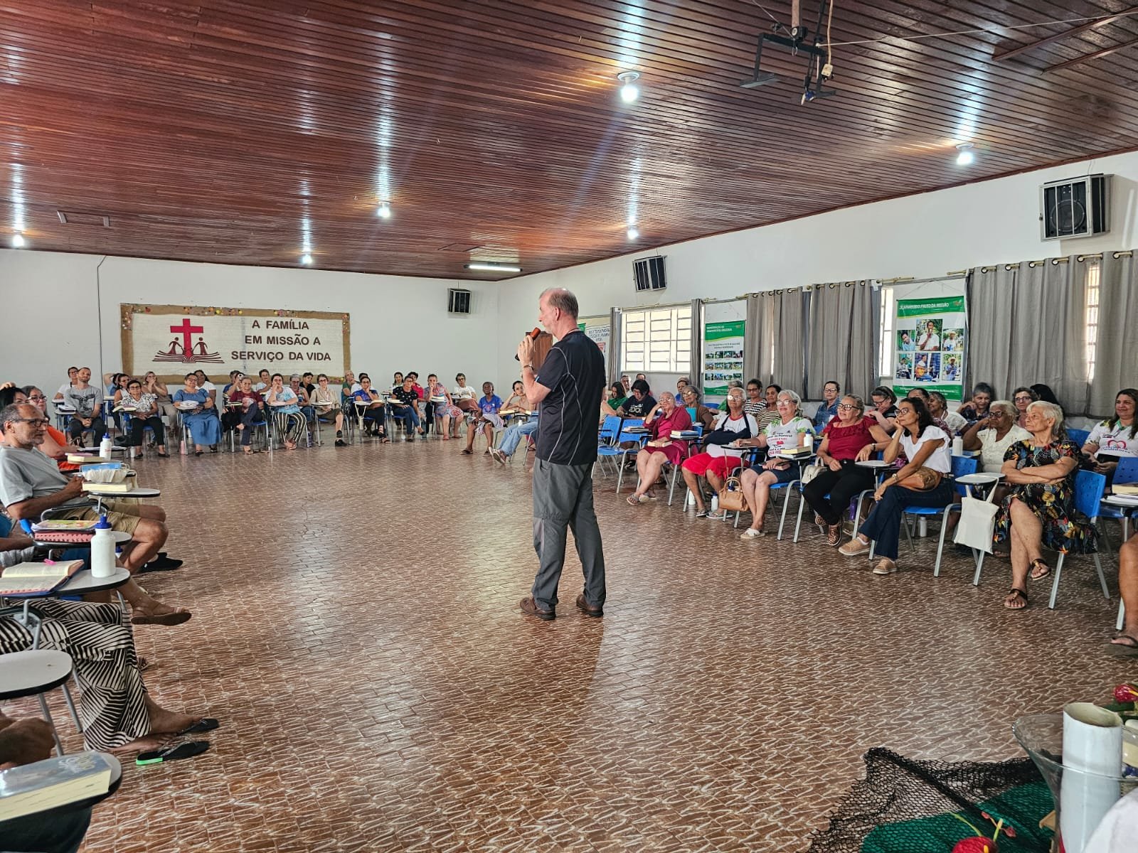 Por fim, nos trabalhos em grupo, foram destacados os principais desafios atuais que a Pastoral e seus agentes populares de saúde estão enfrentando. Em um contexto de crises – ambiental, alimentar, hídrica e de saúde mental – as comunidades enfrentam problemas graves, como a escassez de água, queimadas, falta de alimentos e o aumento dos problemas de saúde mental. Além disso, os agentes populares enfrentam a situação de muitas pessoas utilizarem terapias e receitas naturais baseadas em informações online, sem a devida orientação de terapeutas, o que gera confusão e dificulta o acesso a orientações corretas. Um dos grandes desafios é a formação de novas lideranças, com o objetivo de capacitar novos multiplicadores, abrir espaço para a atuação de novas pessoas nas comunidades e, principalmente, envolver os jovens.