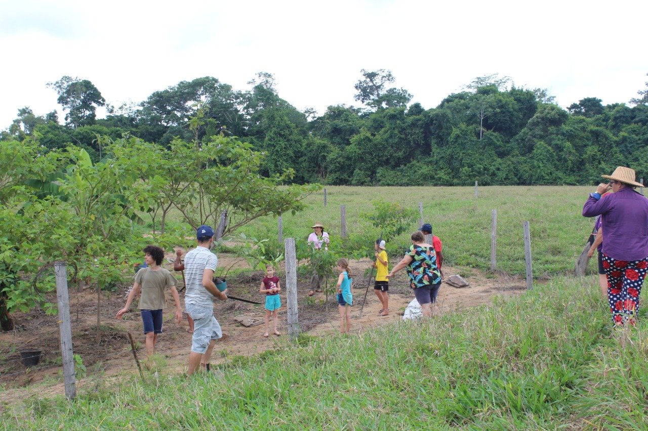 Com uma ação comunitária, famílias camponesas de Espigão D’Oeste e Pimenta Bueno se encontraram para o mutirão de recuperação de nascente e para partilhar saberes e sabores na propriedade seu Delio e dona Roseli. No último sábado (10), pela manhã, adolescentes e adultos fizeram mudas de frutíferas e de árvores nativas e seguiram para fazer o plantio na área degradada onde fica situada a nascente.