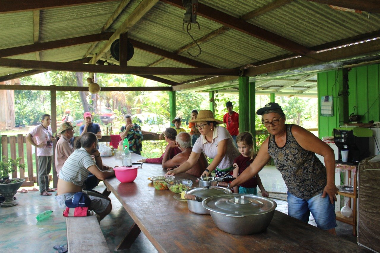 A atividade de solidariedade e ajuda mútua para troca de mudas e sementes entre agricultores, organiza-os para continuar produzindo alimentos com base nos princípios da agroecologia. Na propriedade visitada encontram-se variedades de alimentos produzidos no quintal, dona Roseli ao receber os participantes do encontro em sua casa fala sobre os aprendizados para o cultivo de forma sustentável. Destaca que antes capinava e queimada deixando o solo descoberto, atualmente, aprendeu fazer a cobertura do solo com matéria orgânica e o resultado é maravilhoso, os cultivos agradecem a adubação e produz muito bem.