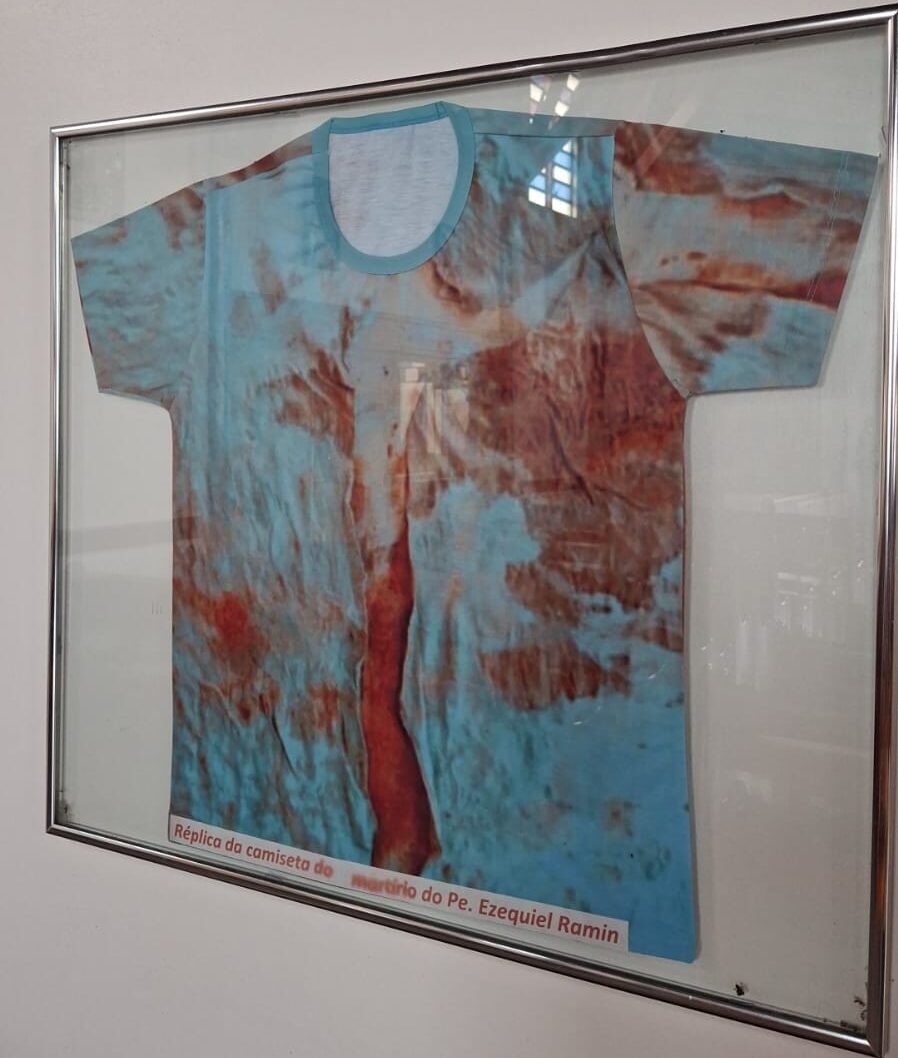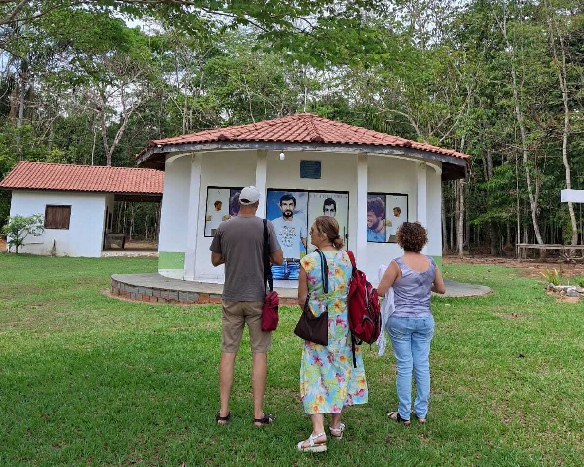 O grupo também pôde observar a concentração de fazendas madeireiras e a presença do grande capital na região, destacando a permanência dos desafios locais. Em Rondolândia, eles visitaram os espaços que preservam memórias significativas, como uma réplica da camisa de Pe. Ezequiel e fotografias históricas. Já na paróquia de Cacoal, conheceram a matriz que acolheu Pe. Ezequiel e onde ainda estão preservadas fotos originais.