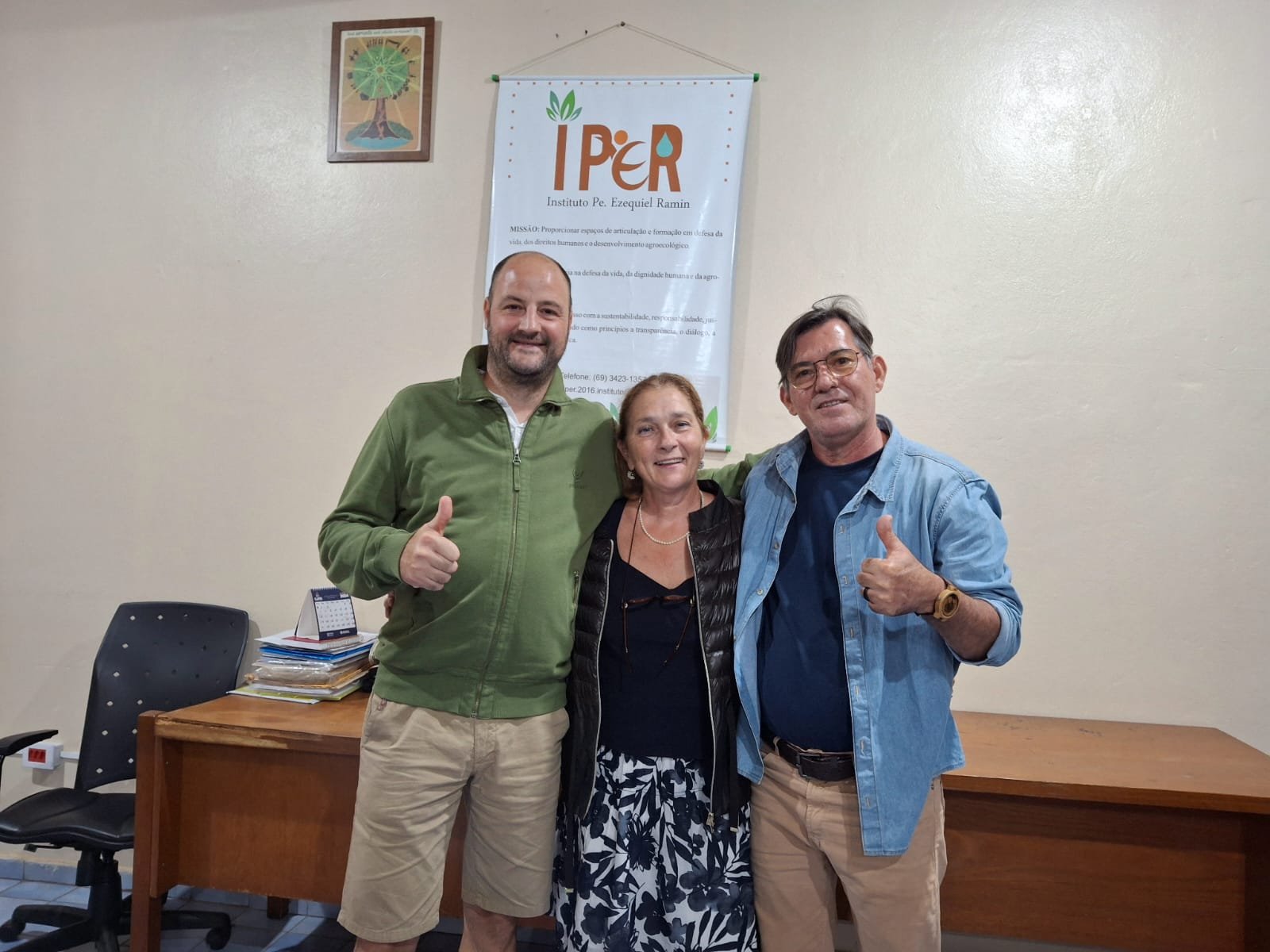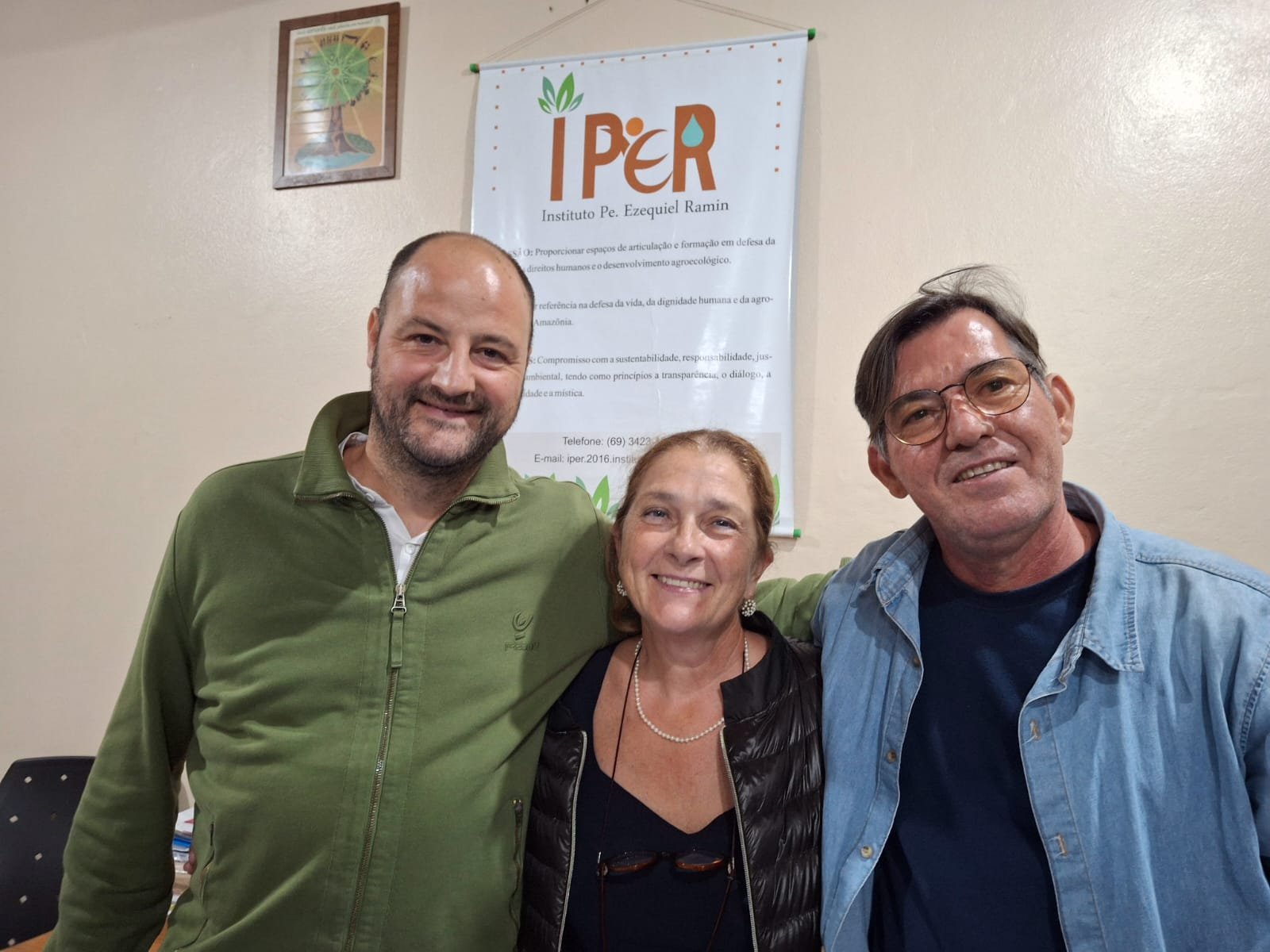 No dia 25 de outubro de 2024, o IPER recebeu uma visita especial de amigos e familiares do Pe. Ezequiel Ramin, representados por Daniela Franco e Joseph, representantes da AES-CCC (Organismo di Cooperazione Internazionale). Este encontro fortaleceu laços e parcerias fundamentais para o instituto, tanto para consolidar o legado e a presença do Pe. Ezequiel quanto para desenvolver estratégias de aprimoramento da romaria e dos espaços que representam sua memória na região. O encontro também possibilitou o compartilhamento da responsabilidade pela missão e visão do instituto, refletidas nas ações realizadas pelo IPER.