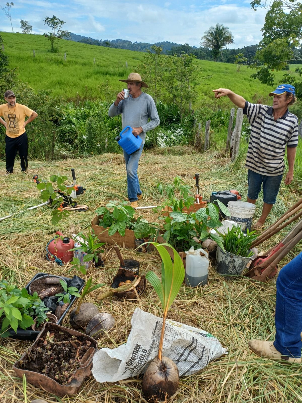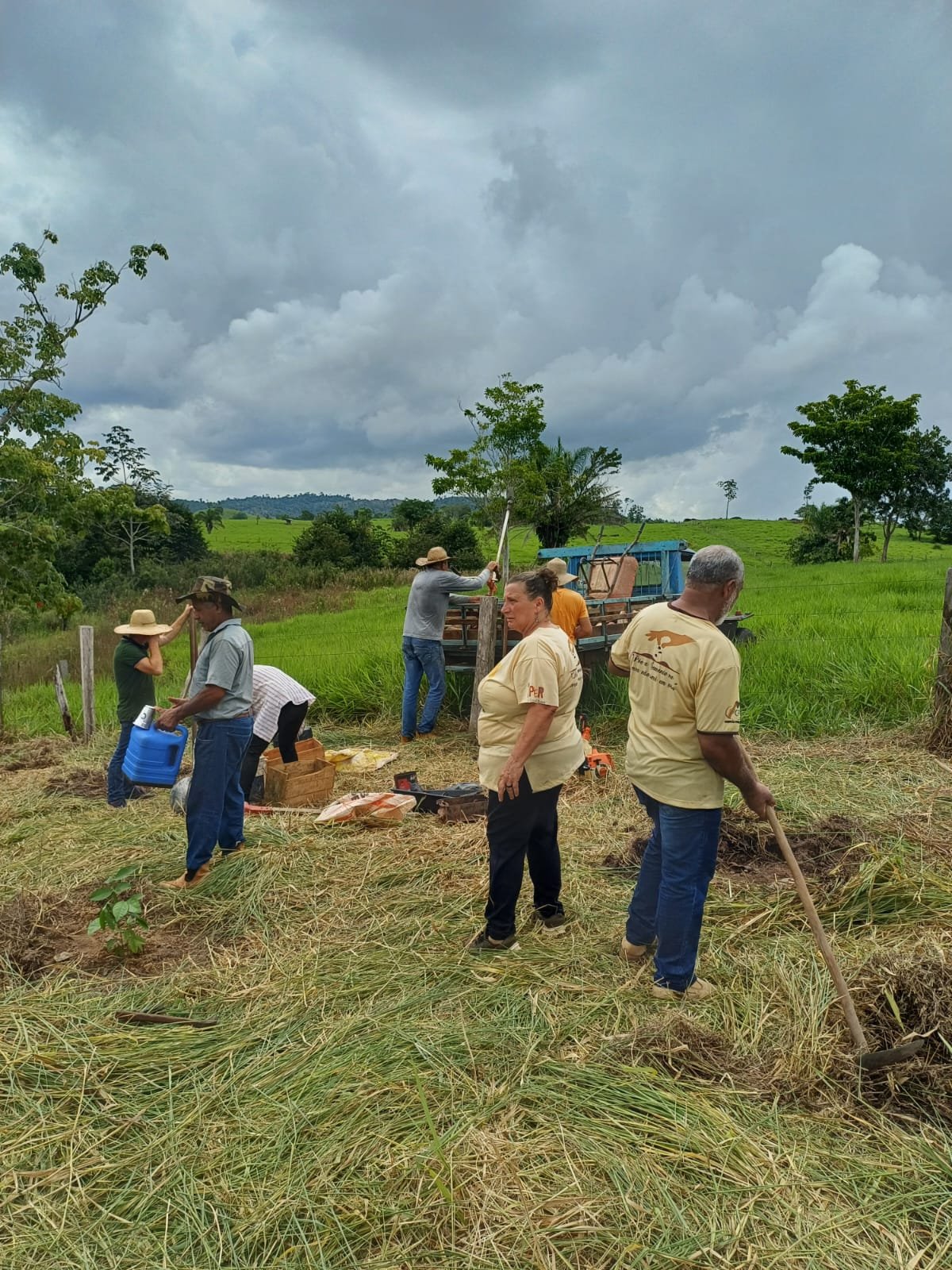 Com animação, a atividade começou com o café da manhã. Os participantes fizeram a doação das mudas de árvores que foram plantadas no local. A área, mesmo cercada, estava com pasto e poucos arbustos. Por isso, a família decidiu fazer o plantio de árvores, que, junto aos participantes da ação, escolheram bem as espécies, a quantidade e fizeram a distribuição. Com isso, o que se pretende é a regeneração do ecossistema local. No futuro, as árvores plantadas atrairão pássaros e outros animais, que trarão novas sementes, provocando o reflorestamento aos poucos e aumentando a infiltração da água da chuva.