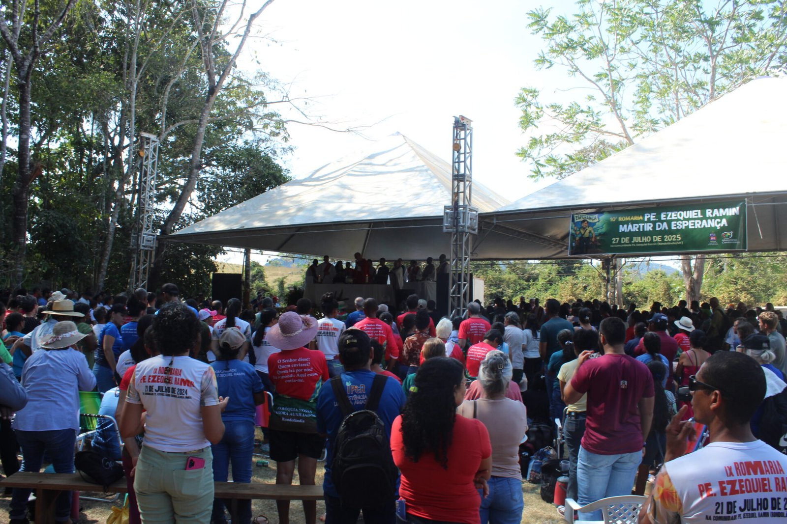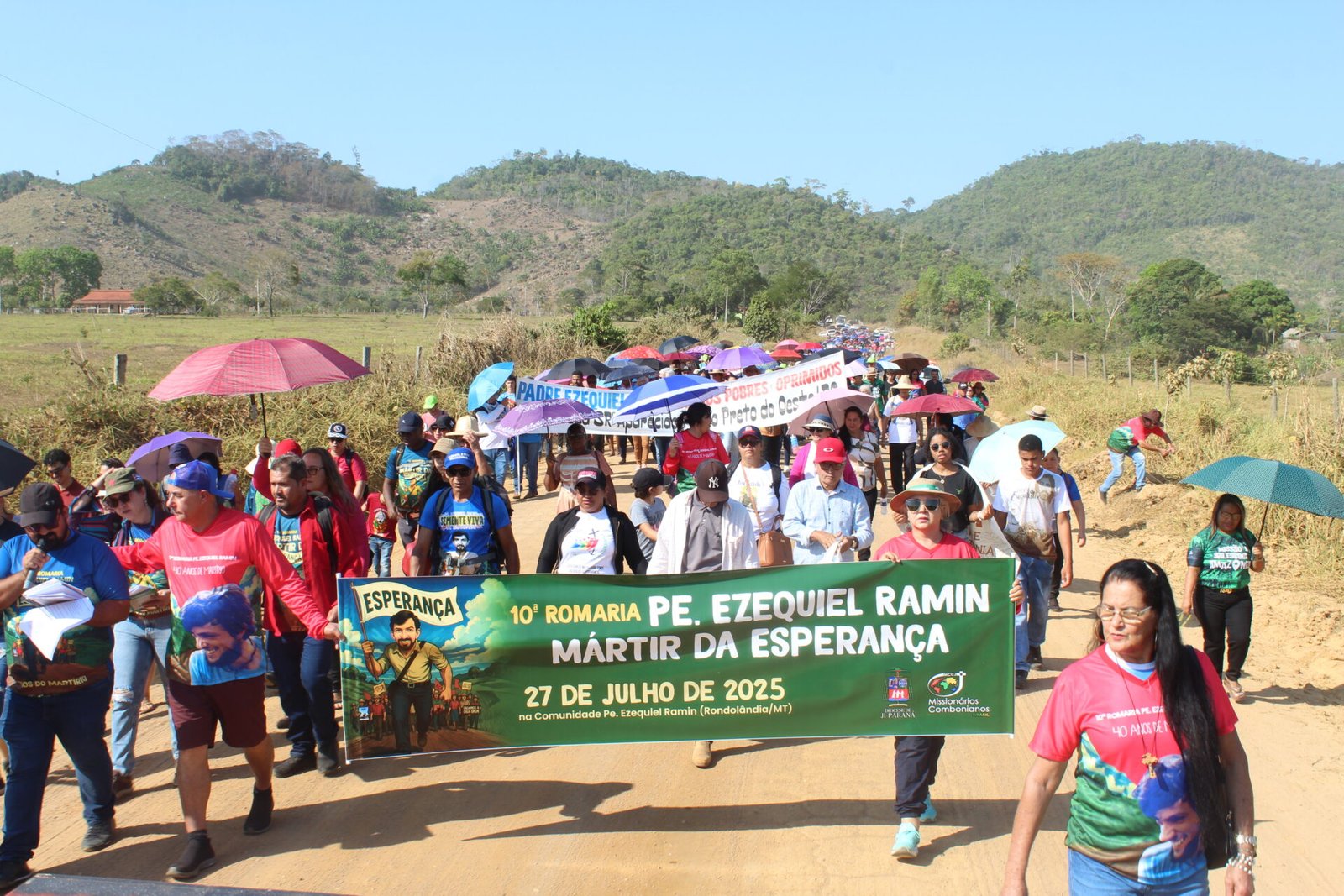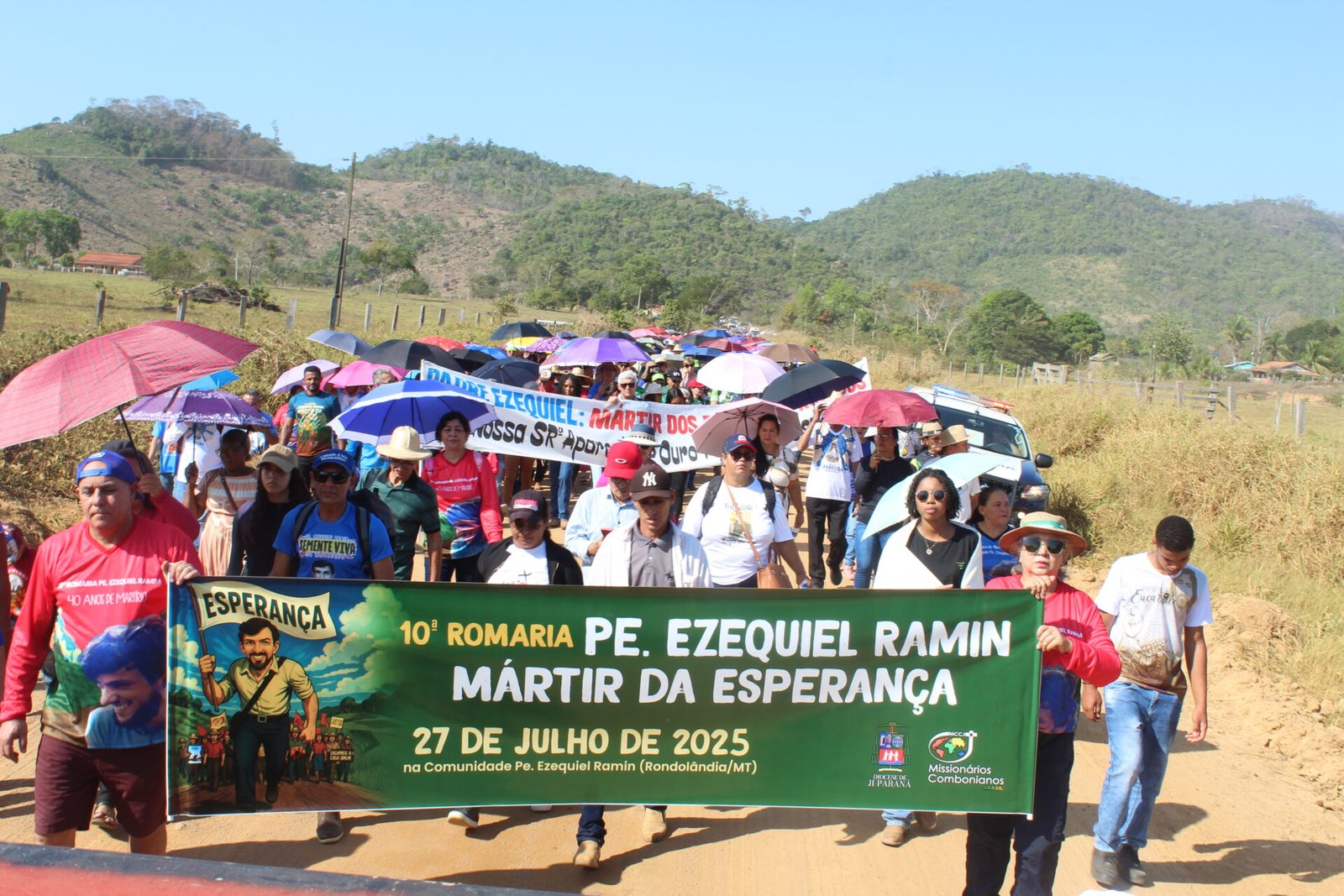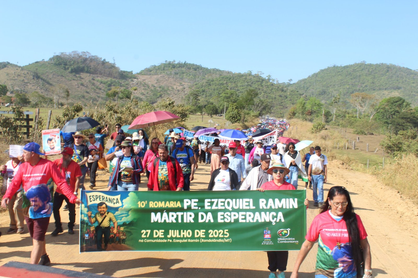 Mais de 3 mil pessoas participaram, no último domingo, 27 de julho, da 10ª Romaria em memória do missionário comboniano Pe. Ezequiel Ramin, realizada nas proximidades do local onde ele foi assassinado durante uma missão de paz, em 1985. O evento celebrou os 40 anos de seu martírio, reunindo romeiros e romeiras de diversos municípios de Rondônia, da Diocese de Ji-Paraná, de dioceses vizinhas, do Mato Grosso e de outros estados. A celebração contou ainda com a presença de 25 padres, 7 religiosas, seminaristas e missionários combonianos.