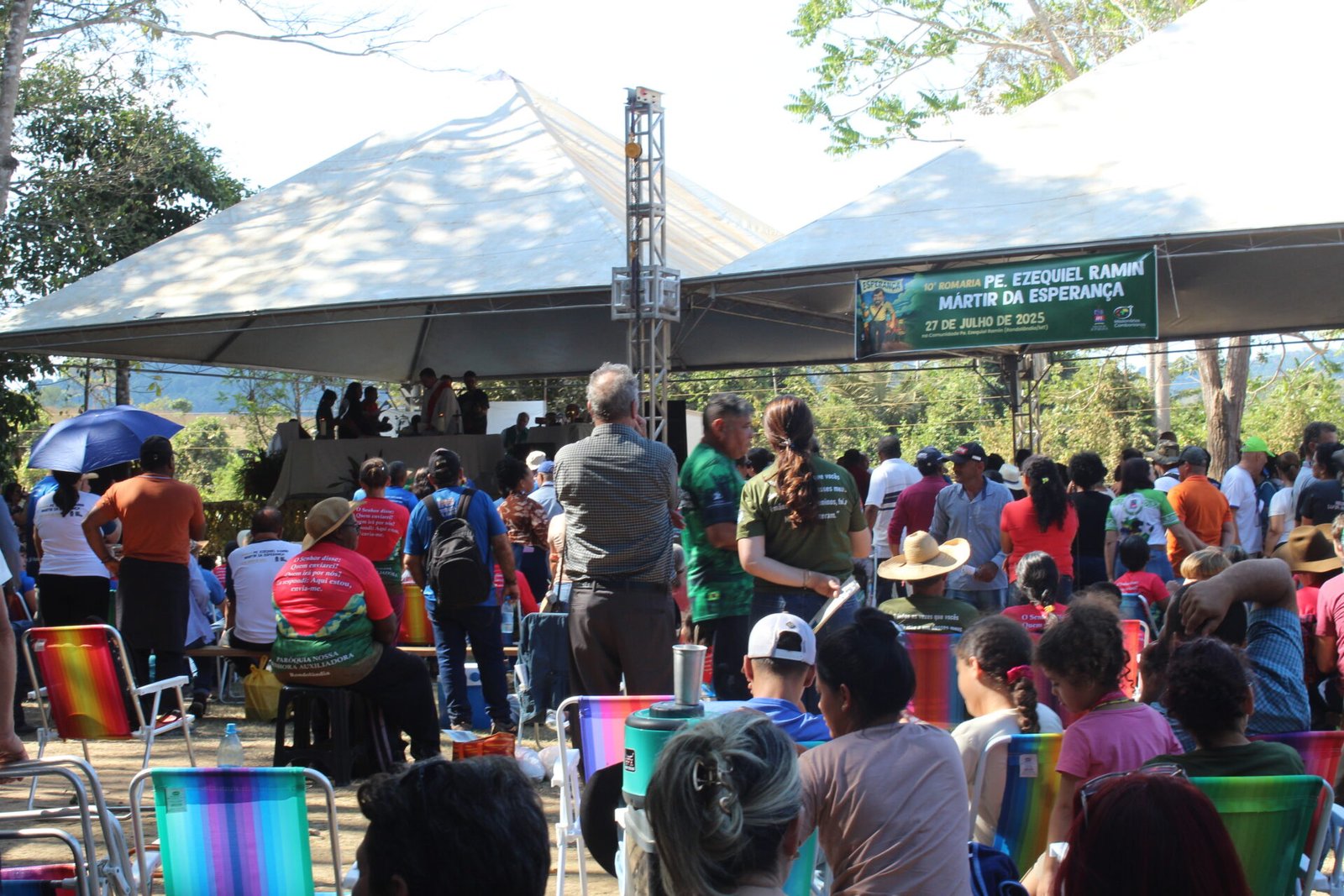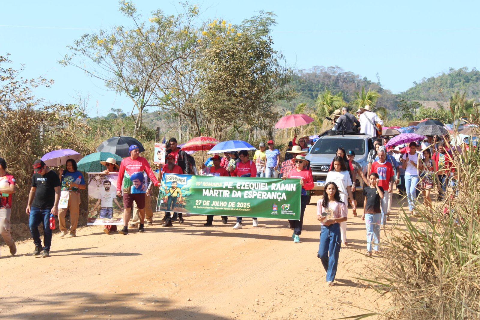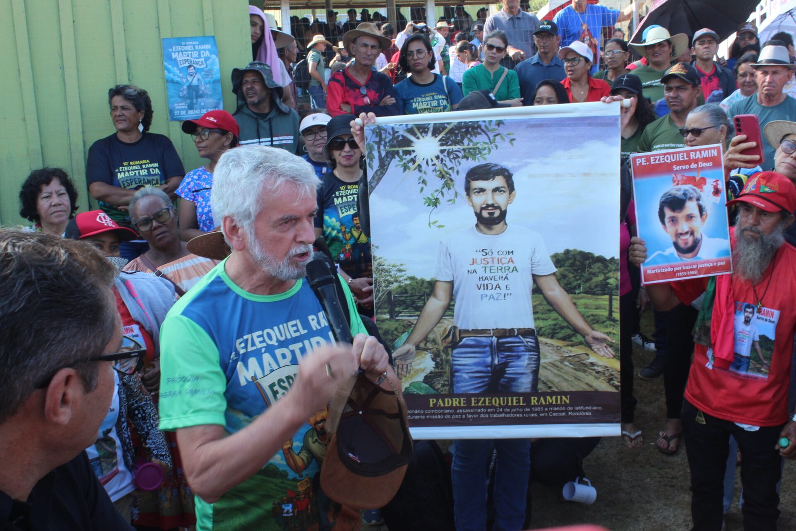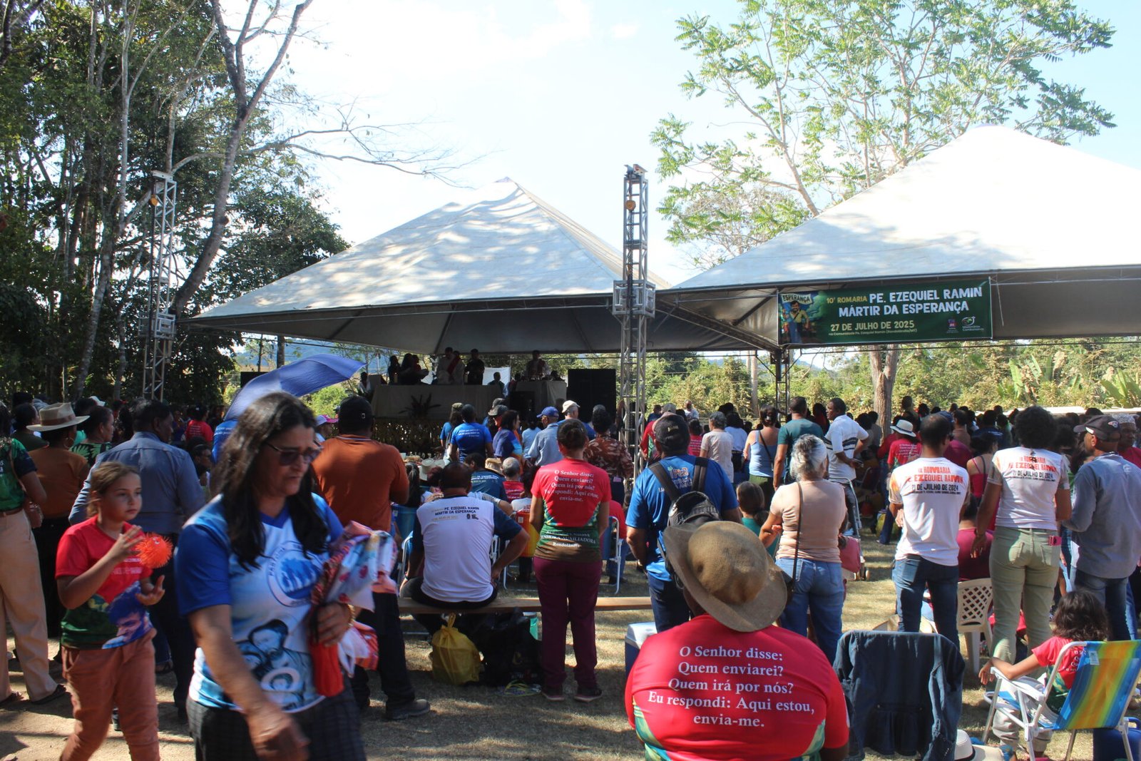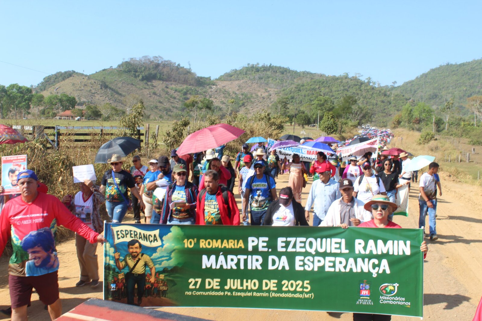 Mais de 3 mil pessoas participaram, no último domingo, 27 de julho, da 10ª Romaria em memória do missionário comboniano Pe. Ezequiel Ramin, realizada nas proximidades do local onde ele foi assassinado durante uma missão de paz, em 1985. O evento celebrou os 40 anos de seu martírio, reunindo romeiros e romeiras de diversos municípios de Rondônia, da Diocese de Ji-Paraná, de dioceses vizinhas, do Mato Grosso e de outros estados. A celebração contou ainda com a presença de 25 padres, 7 religiosas, seminaristas e missionários combonianos.