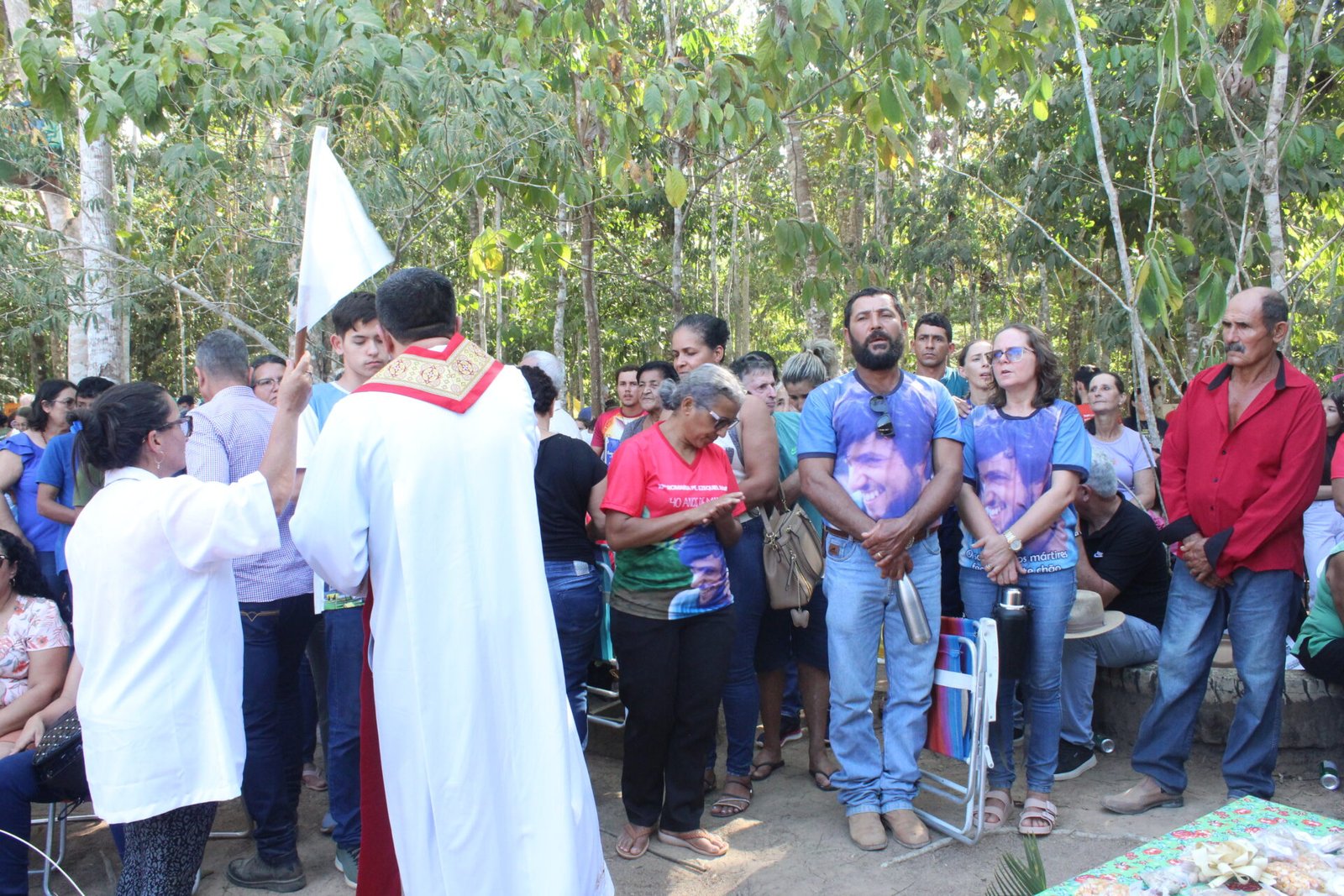 A fala também relembrou, com reverência, o episódio do assassinato de Ezequiel, ocorrido a poucos metros do local da celebração. Após o crime, o corpo do missionário permaneceu por horas no chão, mas — como lembrou o padre — foi encontrado preservado, sem marcas de ataques de insetos ou animais, o que muitos consideram um sinal de santidade.