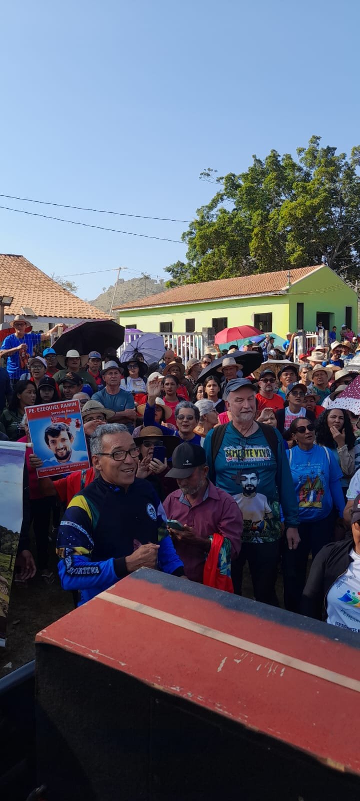 Citando a canção do saudoso José Aparecido, Pe. Mansueto recordou uma das frases marcantes de Ezequiel: “Se Deus me chama, eu não tenho como recusar.” E completou com esperança: “Se Deus está por nós, quem estará contra nós?” A fé e o legado do mártir da esperança continuam a mobilizar corações, atravessando fronteiras e gerações.“ Caminhemos com fé, esperança, garra e determinação. Deus está conosco. Ezequiel caminha conosco. O terreno é sagrado.