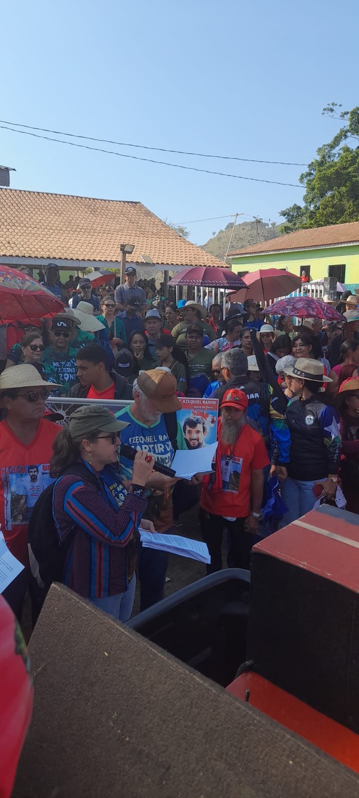 A fala de Flávia Bandeira, do Instituto Pe. Ezequiel Ramin (IPER), reforçou a mística da caminhada: “É a caminhada da fé do nosso povo, das nossas comunidades de base, da luta social em defesa da esperança. Este chão, banhado pelo sangue de Ezequiel, é memória viva que nos fortalece.”