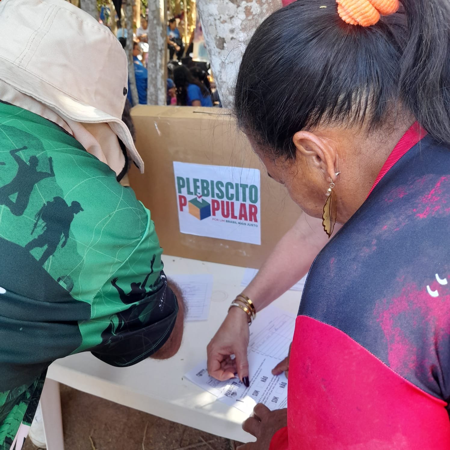 A 10ª Romaria também foi espaço de mobilização popular. Em meio às homenagens, houve a colheita de votos, assinaturas e apoios ao plebiscito popular — um chamado à participação consciente do povo brasileiro. O plebiscito propõe duas perguntas centrais: Você é a favor da redução da jornada de trabalho sem redução de salário? Você é a favor do fim da escala seis por um? Participe!